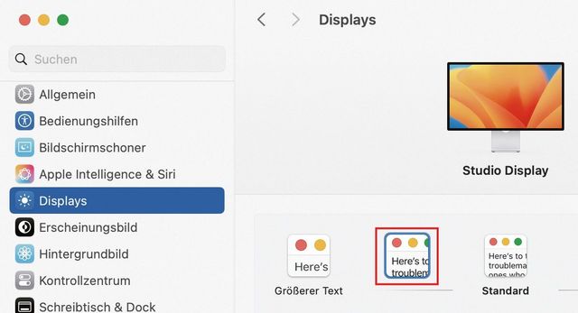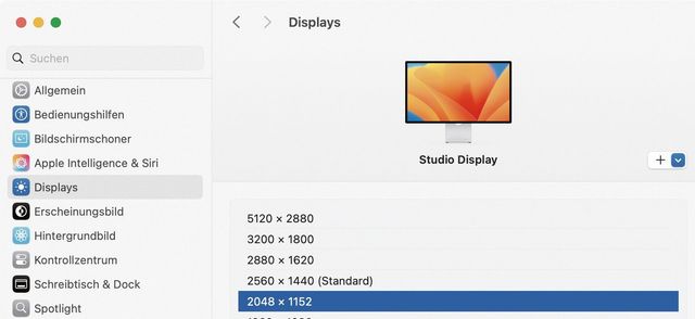 Doch manchmal geht es nur darum, spontan etwas näher zu betrachten – auch wenn man mit der Darstellung sonst zufrieden ist. Wird ein hochauflösendes Display verwendet, wie sie in den MacBooks oder im Apple Studio Display verbaut sind, lässt sich erstaunlich nahe heranzoomen, um Texte lesbarer oder Details besser erkennbar zu machen.