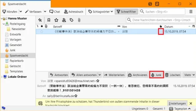 Bild 9: Markieren Sie Spammails als Junk, damit die Mailsoftware Thunderbird dazulernt