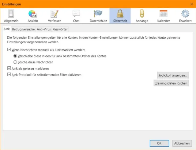 Bild 7: Stellen Sie die Junk-Filter-Funktion in Thunderbird richtig ein
