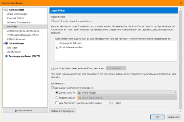 Bild 8: Weitere Junk-Filter-einstellungen lassen sich in Thunderbird pro Konto einrichten