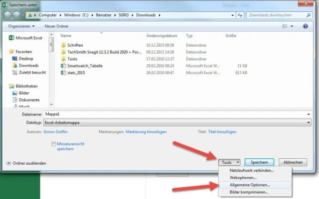 Sie finden das Autobackup-Feature unter Datei/Speichern unter. Nachdem Sie den Speicherungsort bestimmt haben, offenbar sich unterhalb des Fensters die nicht so bekannte Dialogbox Tools. Klicken Sie in das Feld und wählen Sie Allgemeine Optionen...