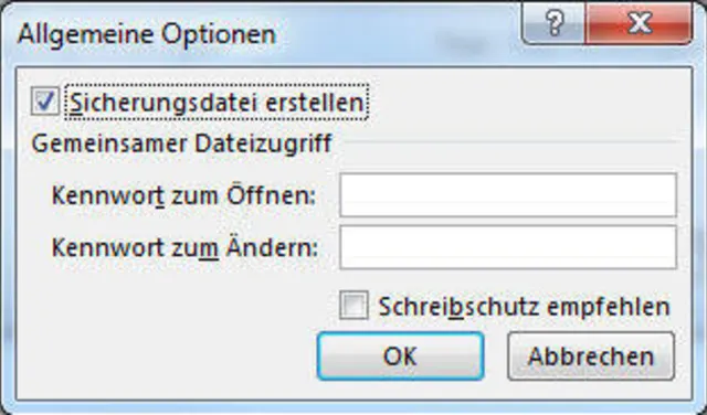 Wenn Sie nun noch sicherer sein wollen, gibt es eine weniger bekannte Funktion, mit der die Microsoft-Tabellenkalkulation im Hintergrund eine zweite Dateisicherung vornimmt. Vorteil der Funktion: Wenn Sie an Ihrer Arbeitsdatei soeben einige Änderungen vorgenommen und gespeichert haben, jedoch diesen Schritt bereuen, offeriert Ihnen die zweite Datei immer eine Version vor Ihrer aktuellen Sicherung.
