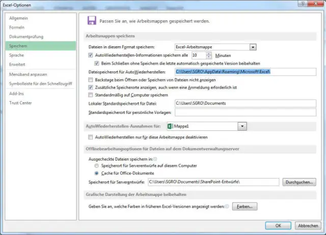 Die automatische Excel-Wiederherstellungsfunktion ist standardmässig aktiv. Sie macht nichts anderes, als Ihre Arbeitsmappe, an der Sie gerade arbeiten, in einem temporären Verzeichnis abzulegen, wenn ein Prozess hängt. Wenn Sie wissen wollen, wo und wie das vor sich geht, öffnen Sie unter dem Menü Datei die Optionen. Es öffnet sich ein Fenster mit den Excel-Optionen. Im Menüpunkt Speichern unter dem Abschnitt Arbeitsmappen speichern finden Sie den Dateispeicherort für AutoWiederherstellen.