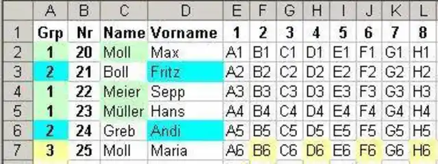 Jeder Datensatz hat eine eigene Nummer (Nr). Zusammengehörige Datensätze wurden einer zweiten Nummer (Grp) zugeteilt. Mit dieser Gruppennummer können Sie die Ausgabe wie folgt steuern: