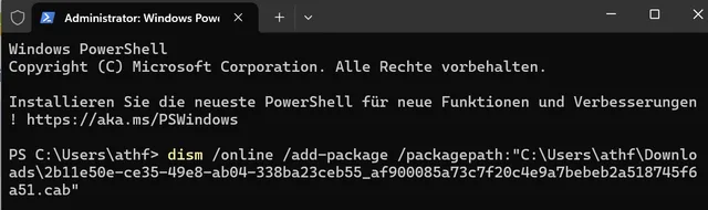 Bild 8: Ältere Patches im seltenen CAB-Format installieren Sie mithilfe des DISM-Befehls