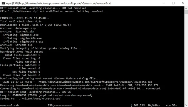 An Privatanwender richten sich Tools wie WuMgr und WSUS Offline Update. Beide werden jedoch seit ein paar Jahren nicht mehr weiterentwickelt. Für WSUS Offline Update gab es bislang mit der Community Edition zwar eine funktionierende Variante. Diese unterstützt allerdings nur Windows 10 und selbst das nur bis zur Version 21H2 (aktuell ist 22H2). Anfang 2025 hat ein GitLab-Nutzer namens «Altima» ein Update begonnen, das aber in der Beta-Phase stecken geblieben zu sein scheint. Sie finden es unter der Log-in-pflichtigen Webadresse gitlab.com/altima/wsusoffline/-/releases. Klicken Sie auf den Link wsusofflineCE12.7__beta7_.zip, um es herunterzuladen.