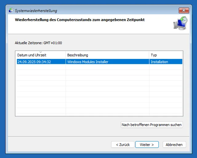 Bild 12: Mithilfe Ihres Reparatur-Sticks kehren Sie zu einem früheren Wiederherstellungspunkt zurück