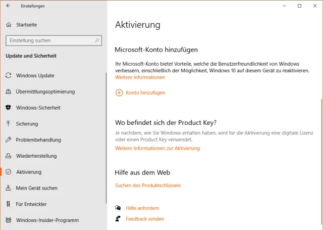 Zum Chat mit dem Microsoft-Support geht es bei Aktivierungsproblemen via Start/Einstellungen/Update und Sicherheit/Aktivierung. Je nach Fenstergrösse finden Sie ganz unten oder in der rechten Spalte einen Link Hilfe anfordern.