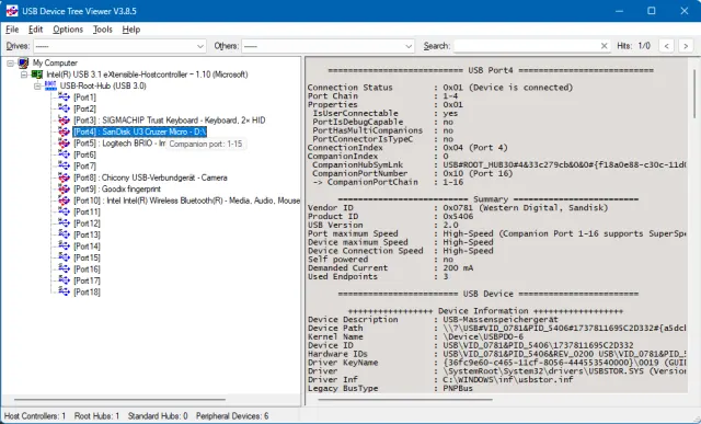 Der USB Device Tree Viewer des deutschen Entwicklers Uwe Sieber basiert auf freiem Quellcode von Microsoft. Er hat diesen in eine kleine portable Anwendung gepackt, die sich einfach entzippen und starten lässt, und die damit ohne Installation auskommt.