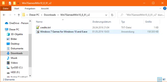 Doppelklicken Sie die entzippte Datei «Windows 7 Games for Windows 10 and 8.exe»