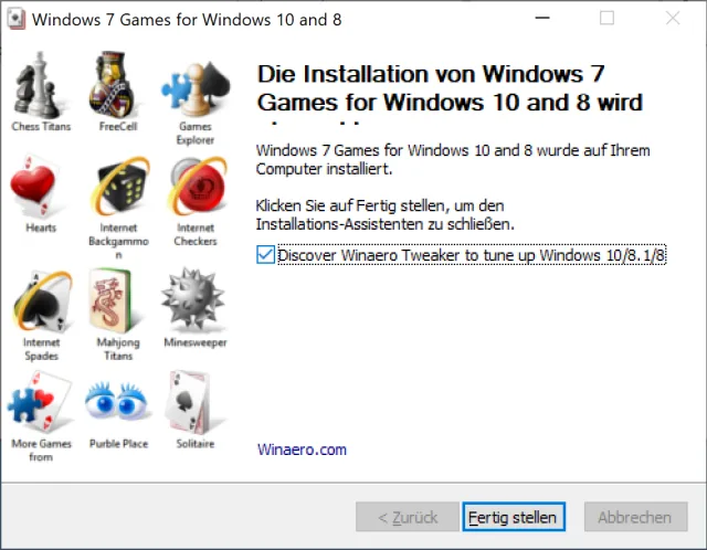 Chess, FreeCell, Hearts, Mahjong, Minesweeper, Purple Place, Solitaire und SpiderSolitaire – wenn Sie bei diesen Namen nostalgisch an Ihre Windows-7-Zeit zurückdenken, sind Sie in diesem Artikel richtig. Diese acht Games lassen sich unter Windows 10 nachinstallieren und spielen, seit einige Nerds von Winaero sich die richtigen Dateien aus dem alten System zusammengepflückt und in ein Paket verschnürt haben.