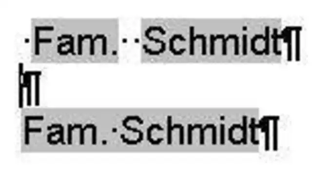 Sind jedoch nur einige der Felder ausgefüllt, stimmen die Leerzeichen nicht mehr, da ein leeres Feld ebenfalls als Leerzeichen angezeigt wird