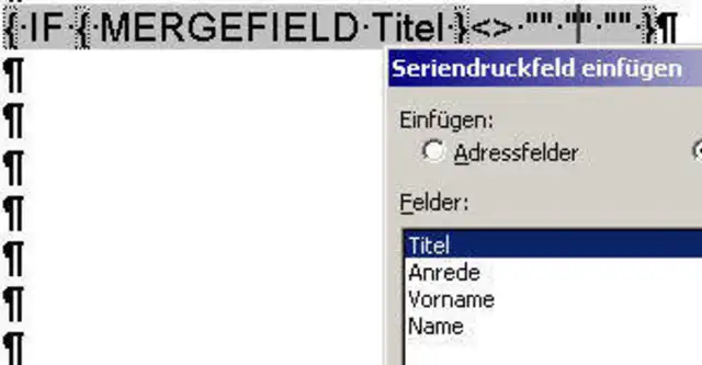 Fügen Sie dann genau an dieser Stelle das Seriendruckfeld ein, dass Sie mit dieser Bedingungsfunktion überprüfen. Gleich hinter dem eingefügten Seriendruckfeld, fügen Sie nun noch ein Leerzeichen ein. Dieses erscheint dann ebenfalls nur dann, wenn die Bedingung "ist nicht leer" für dieses Seriendruckfeld wahr ist.