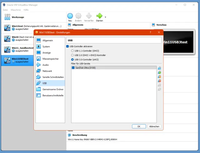Ihre virtuelle Maschine – etwa mit Windows 11 – ist in VirtualBox installiert, die Gasterweiterungen sind ebenfalls hinzugefügt. Nun wollen Sie in der virtuellen Maschine einen USB-Stick benutzen. Aber was Sie auch versuchen: Ihre VM erkennt den USB-Stick nicht.