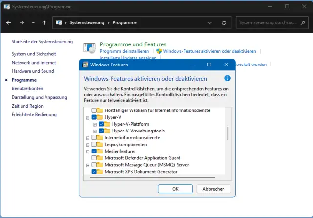Hyper-V-Funktionen via Systemsteuerung aktivieren