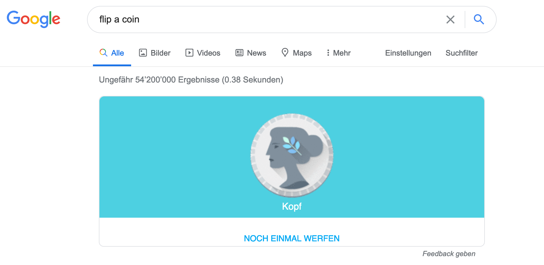 Über Google kann man eine virtuelle Münze werfen.