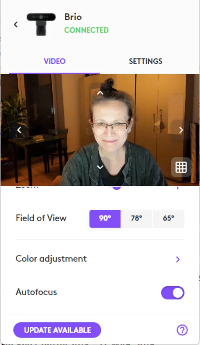 Im Falle der Logitech Brio 4K gibt Ihnen auch während der Teams-Nutzung die App Logi Tune schnellen Zugriff auf den Zoom, auf die Grösse des Bildausschnitts (Field of View) und Farbanpassungen (Color adjustment) mit Filtern und Anpassungen (Adjustments) wie Weissabgleich (White Balance), Helligkeit (Brightness), Kontrast, Sättigung (Saturation) und Schärfe (Sharpness). Probieren Sie es aus!