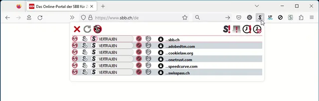 Vor ein paar Tagen wollte ich in meinem Firefox die Webseite der SBB anschauen. Doch die Seite wollte einfach nicht: Kurz nachdem sie durchaus vielversprechend zu laden begonnen hatte, war – zack! – das Fenster einfach wieder leer. Ein Neuladen (Ctrl+R) half auch nicht. Öffnete ich via Hamburgermenü oben rechts ein Neues privates Fenster und rief sbb.ch dort auf, klappte es jedoch trotzdem.