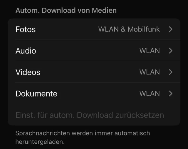 Sie können festlegen, dass Medien nur bei WLAN automatisch heruntergeladen werden. Dies ist nützlich, falls Sie keine Datenflatrate haben. So gehen Sie vor: