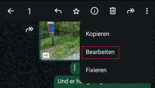 - Tippen und halten Sie die versendete Nachricht. Es erscheint oben eine Menüleiste.