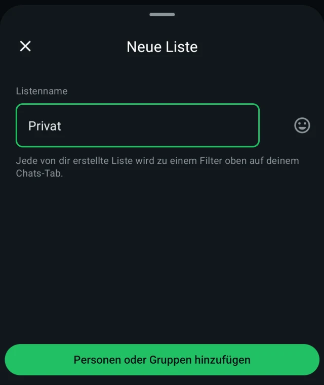 Bild 4: Mit der Listenfunktion können Sie eigene Chatfilter erstellen