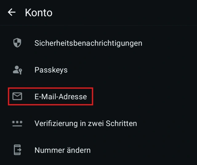 - Öffnen Sie Einstellungen/Konto/Verifizierung in zwei Schritten.