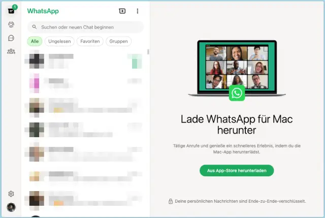 Die Webversion können Sie im Webbrowser unter web.whatsapp.com aufrufen. Die Desktop-App gibt es im App Store (Mac) oder Microsoft Store (Windows) oder via Link whatsapp.com/download?lang=de_DE.