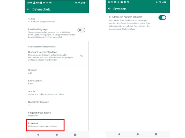 - Tippen Sie auf den Kippschalter, um IP-Adresse in Anrufen schützen zu aktivieren.