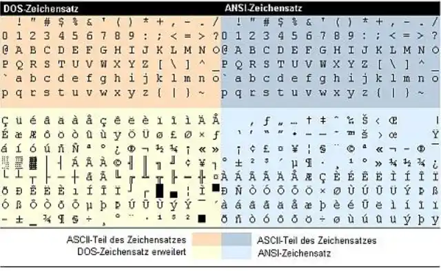 Nicht alle Zeichen aus ANSI und ASCII stimmen überein. Relevant ist unter Windows heute nur noch die rechte Hälfte (ANSI), sowie das neuere Unicode