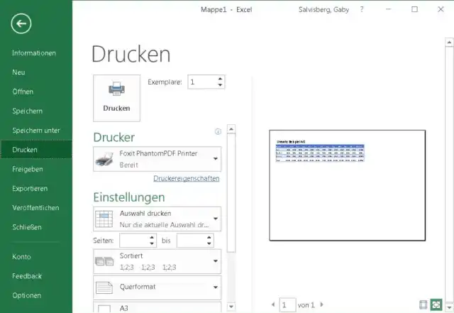 Markieren Sie den zu druckenden Bereich. Gehen Sie zu Datei/Drucken. Wählen Sie bei Einstellungen die Option Auswahl drucken. Beim Drucker greifen Sie zum Microsoft-eigenen oder zum nachträglich installierten PDF-Drucker.