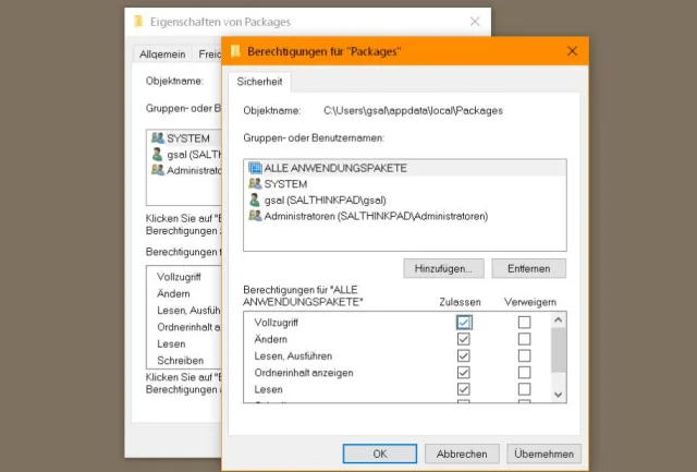 Den Anwendungspaketen die Berechtigung auf den Packages-Ordner erteilen