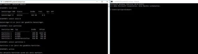 - Die Partitionen werden angezeigt. Merken Sie sich die Nummer, die der gewünschten Partition zugeteilt wurde. Tippen Sie dann select partition NUMMER.