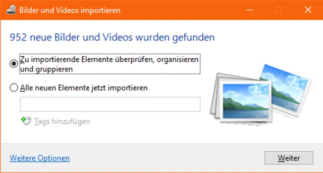 Quelle: PCtipp.chHat Windows das Gerät fertig durchsucht, erscheint ein Dialog «Bilder und Videos importieren».