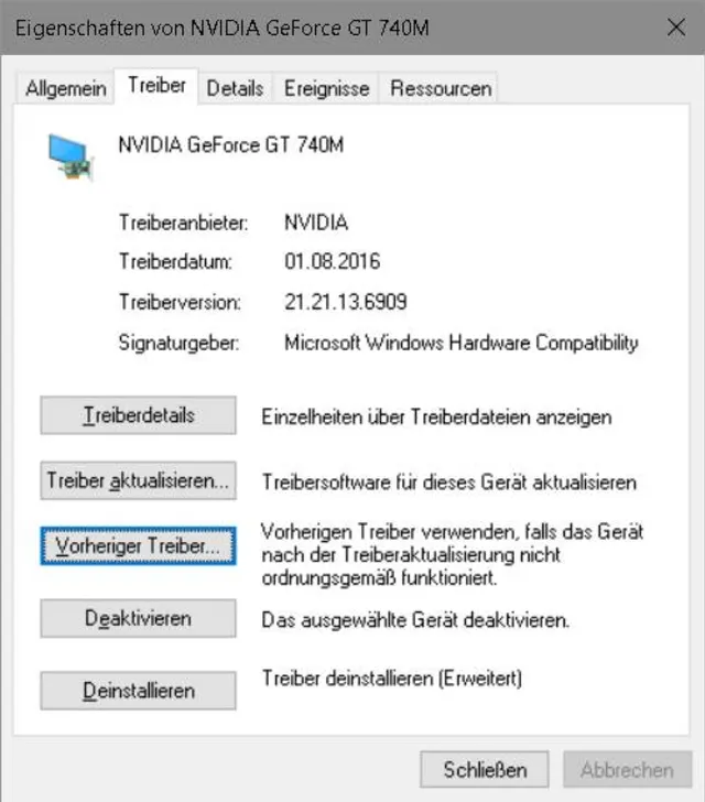 Ein Treiber-Rollback ist für einzelne Geräte aus dem Geräte-Manager heraus möglich