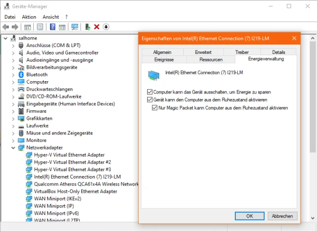 Im Geräte-Manager lässt sich das Energiesparen für bestimmte Komponenten separat ausschalten