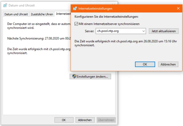 Windows 10 mit Internet-Zeitserver synchronisieren