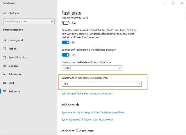 Mit «Nie» werden keine Programmfenster gruppiert