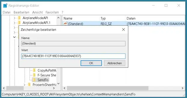 Der für SendTo zuständige Registry-Eintrag