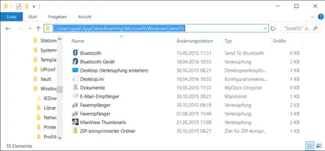 Typischer Inhalt eines SendTo-Ordners