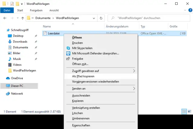 Windows 10: Standardvorlage und Dateivorlagen verwalten in WordPad