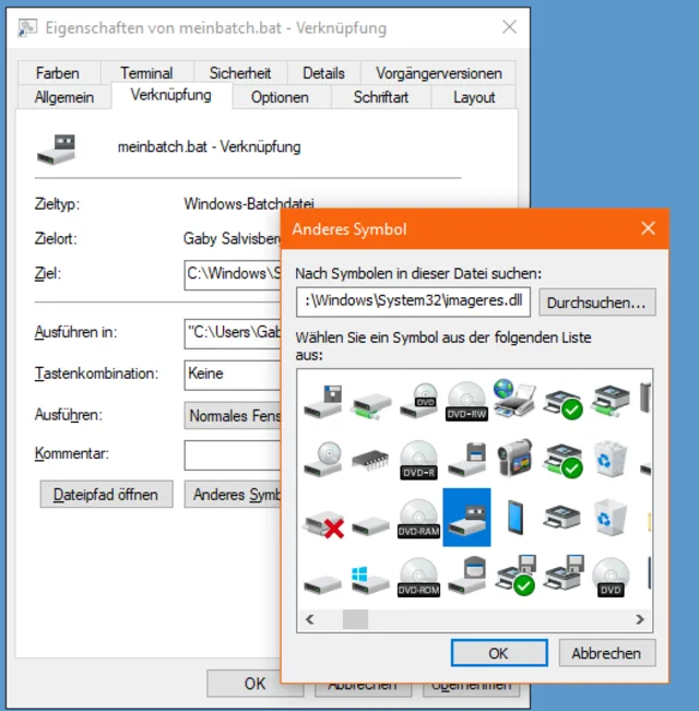 C:\Windows\System32\cmd.exe /c "C:\Users\Ihr Name\meinbatch.bat"