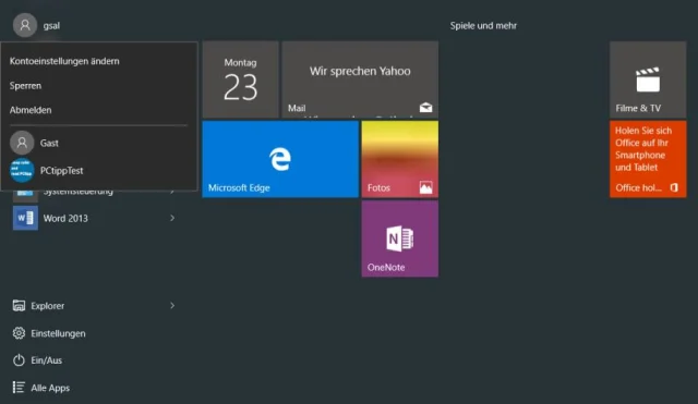 Übers Startmenü: Klicken Sie auf Start, danach ganz oben auf Ihr Benutzerkonto. Es erscheinen alle vorhandenen Benutzerkonten. Klicken Sie auf das Konto des Kollegen, dann kann er sein Passwort eingeben.