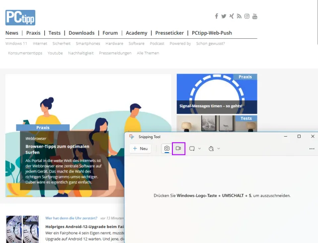 Windows 11: Bildschirm filmen mit dem Snipping-Tool