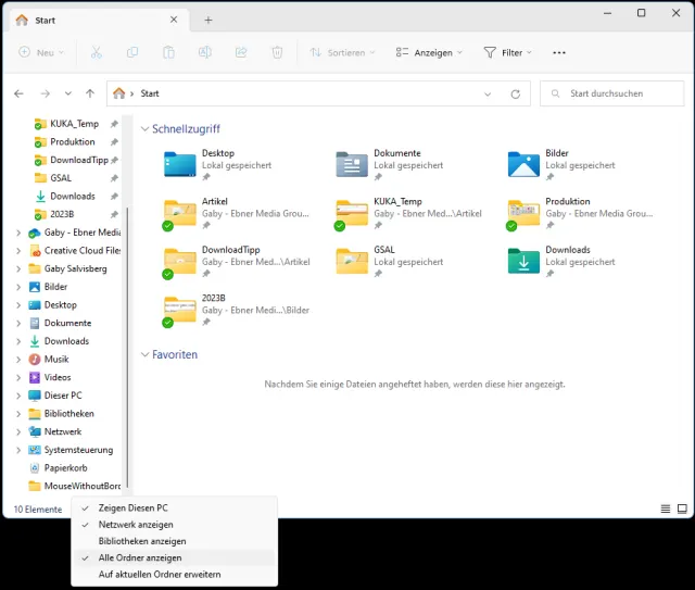 Windows 11 Explorer: Schnellzugriffe nicht umsortierbar