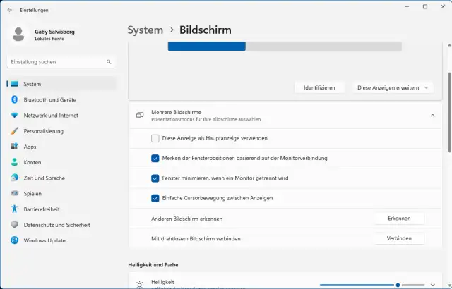 Zuerst zum Wichtigsten: Öffnen Sie die Einstellungen-App und gehen Sie via System zu Bildschirm. Erstens können Sie die symbolisch dargestellten Displays hier per Maus verschieben. Steht Bildschirm 1 nicht links, sondern rechts der 2, ziehen Sie ihn einfach per Maus auf die andere Seite. Und zweitens: Wenn die beiden auflösungstechnisch verschieden hoch sind, können Sie die beiden ebenfalls per Maus hoch- oder runterziehen, damit die beiden entweder bei der oberen oder unteren Ecke bündig werden.