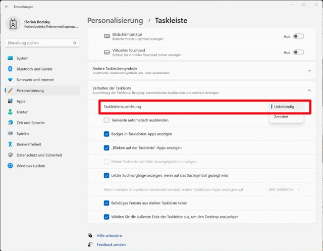 Unter Windows 11 ist die Taskleiste, wie das Apple Dock, in die Mitte gerutscht. So verschieben Sie sie wieder nach links.