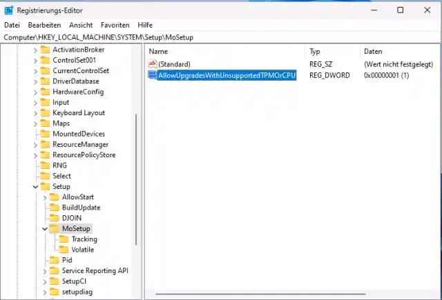 Mit diesem Registry-Eintrag ignoriert Windows 11 sowohl den Prozessor als auch den TPM-Chip