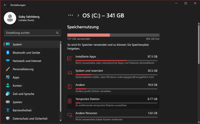 Die neue Speichernutzungsübersicht in Windows 11
