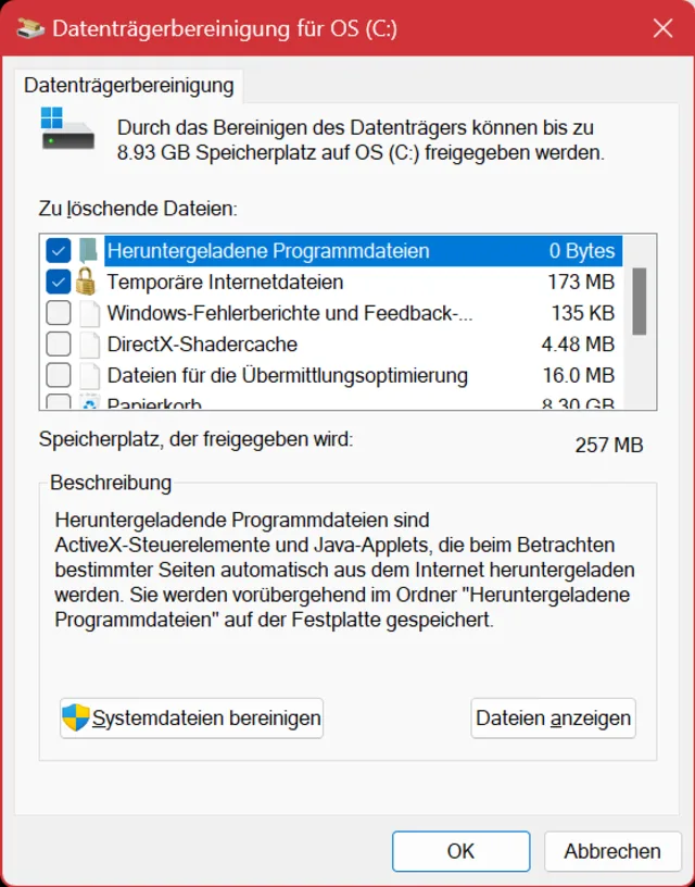 Die alte Datenträgerbereinigung ist auch in Windows 11 noch vorhanden