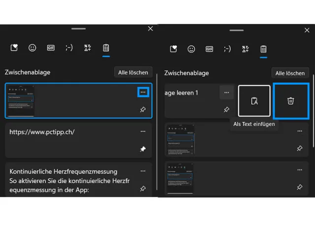 Quelle: Screenshot/PCtipp.chAlle Zwischenablage-Daten löschen – ausser die angepinnten Elemente